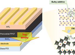 In state-of-the-art n-i-p structured perovskite solar cells (PSCs), a dopant for doping hole transporting materials (HTMs) is a crucial component, which affects not only the electrical properties of HTMs, but also the performances and stabilities of PSCs. In this paper, we report new dual functional ionic liquids (ILs) consisting of various alkylammoniums (from butyl to decyl) and bis(trifluoromethylsulfonyl)imide (denoted as BATFSI, HATFSI, OATFSI, and DATFSI) as a dopant and surface passivator for highly efficient and stable PSCs and modules. Among these ILs, OATFSI provides enough miscibility with a poly(triarylamine) solution, which results in a smoother morphology of the hole transporting layer (HTL) with an enhanced electrical property via efficient doping. Simultaneously, OATFSI passivates the perovskite surface in situ, during spin-coating deposition of the HTL. Highly efficient and stable OATFSI-based PSCs are fabricated with a mesoporous n-i-p structure and a maximum power conversion efficiency (PCE) of 23.34%, due to reduced non-radiative recombination and better charge extraction. To verify the scalability of our new IL dopants, perovskite modules with a high PCE of 18.54% (on the aperture area of 224.89 cm(2)) and 19.91% (on the active area of 209.39 cm(2)) are demon...